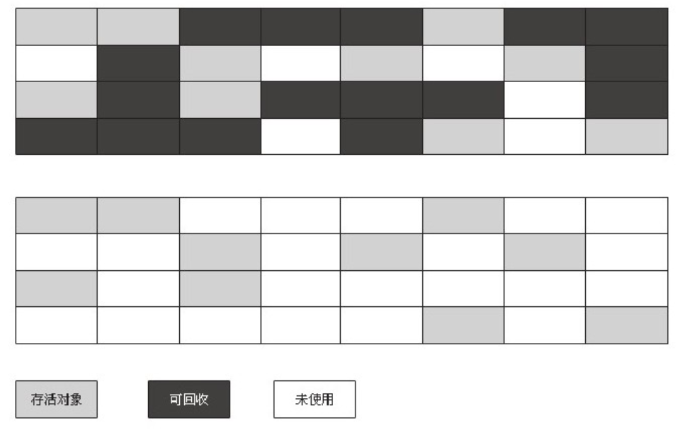 之后原来的Survivor From区就空了,而原来的Survivor To区就非空。这个时候它们的角色就调换了,空的叫做Survivor To区,非空的叫做Survivor From区。