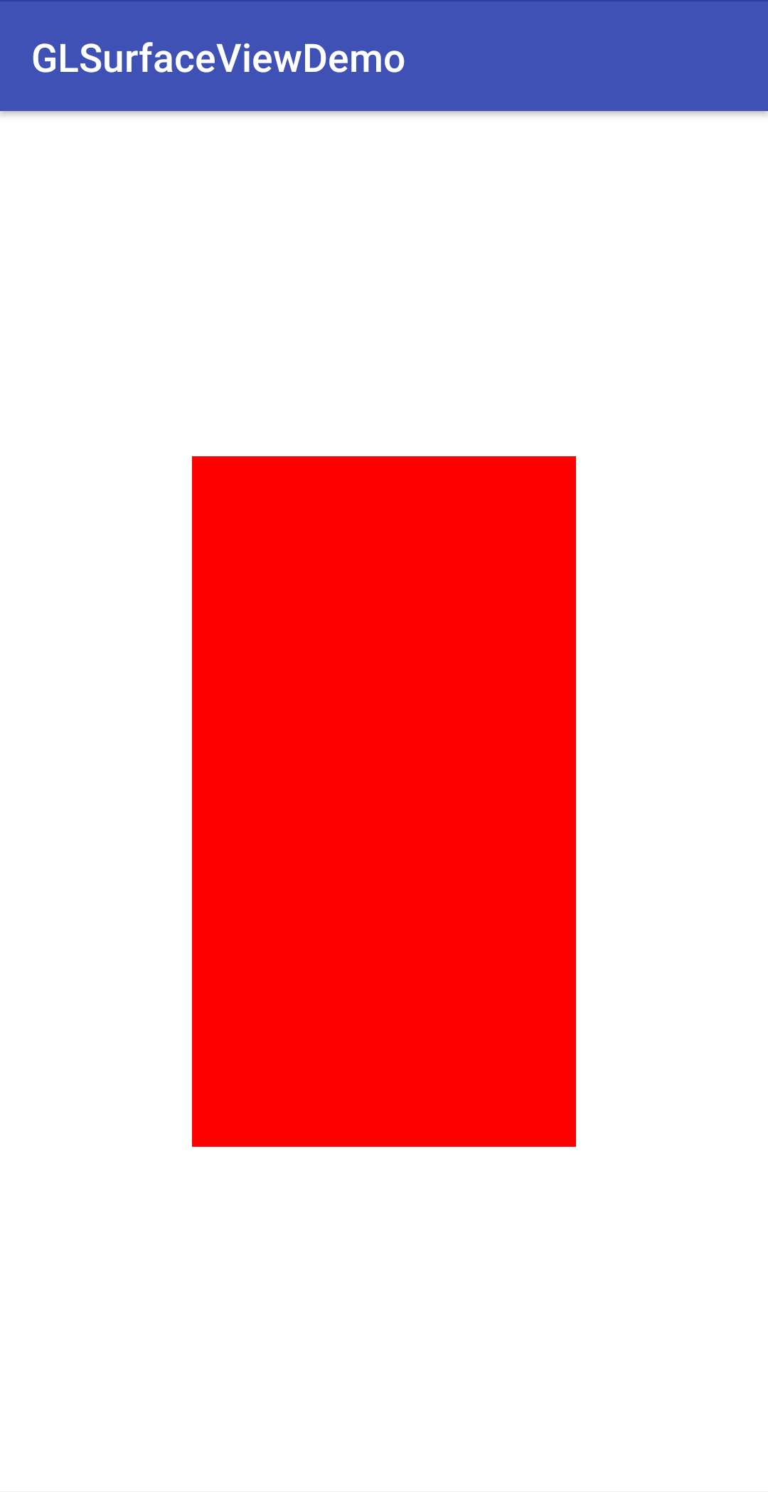 可以看到,我们实现了Renderer去画一个红色矩形,然后使用setRenderer设置给GLSurfaceView就可以了,运行效果如下: