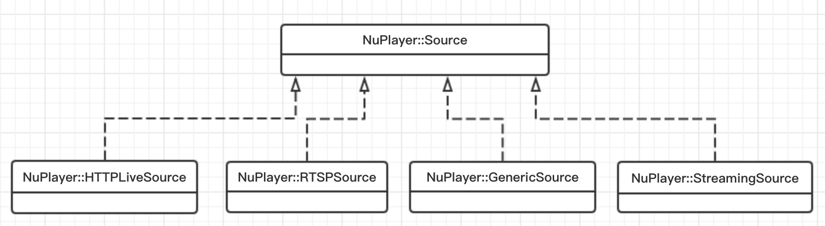 上面的HTTPLiveSource、RTSPSource、GenericSource、StreamingSource都继承NuPlayer::Source