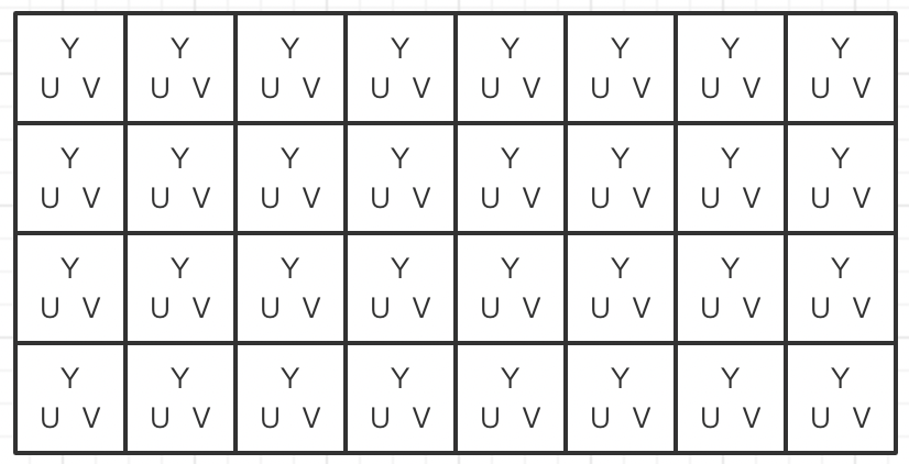 444的含义是同一行相邻的4个像素,分别采样4个Y,4个U,4个V