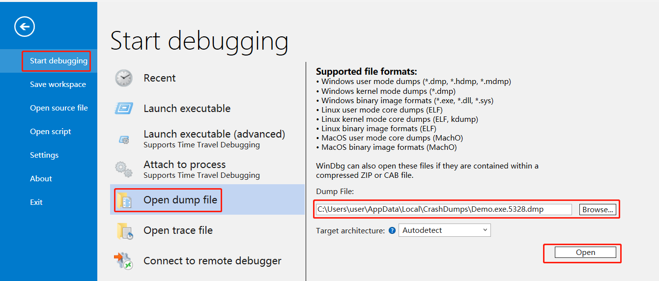 我们可以使用WinDbg去打开dump文件: